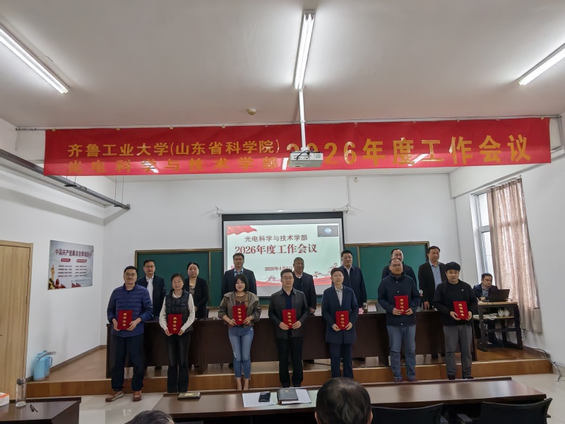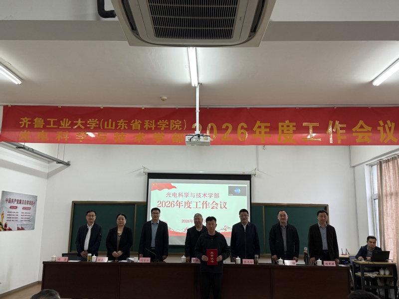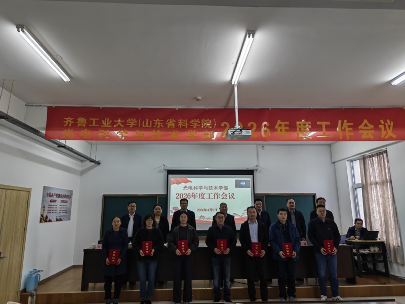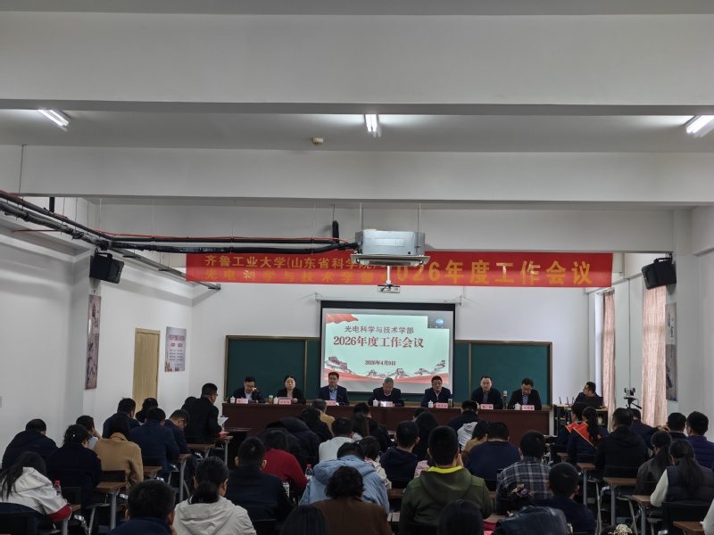 4月9日上午,光电科学与技术学部2026年度工作会议在孙村园区办公楼五楼会议室召开,济宁园区、青岛园区设线上分会场。学部领导班子成员、全体教职员工参加会议,学部副主任倪家升主持会议。